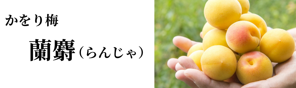 福井県で生まれた品種「かをり梅 蘭麝」を、樹上で完熟させ香りが最高潮に達した短い時期に自然落下した梅のうち、粒揃いの品物を「かをり梅 蘭麝(ランジャ)」と呼びます。