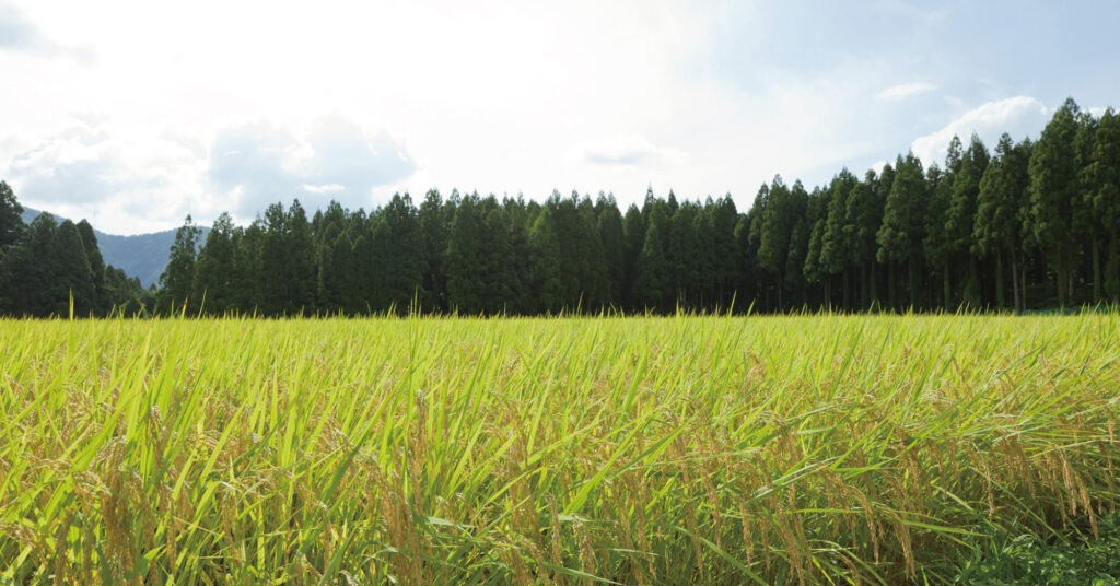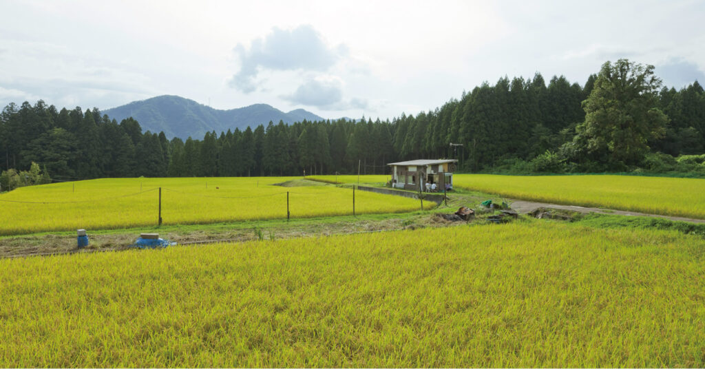 滝本さんのお米が作られる田んぼは、福井県の山奥の林に囲まれた中にあり、自然溢れる、とても気持ちの良い空間にあります。