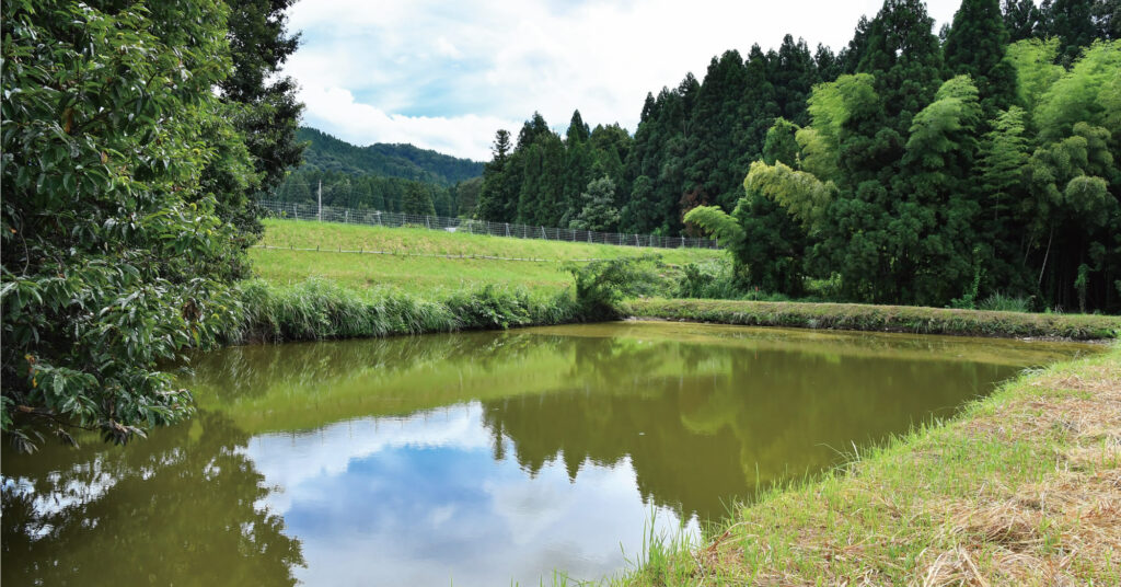 そのために、農場の中の土を掘り起こし、きれいな湧き水が出るため池をつくりました。